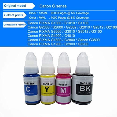 • RC PRINT Refill Ink For Use InCanon G1000, G1010, G1100, G2000, G2002, G2010, G2012, G2100, G3000, G3010, G3012, G3100, G4000, G4010 Printer – Cyan, Magenta, Yellow & Black